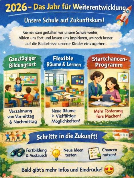 Hierzu starten in mehreren Klassen Testphasen zur Umgestaltung, um unseren Schüler*innen ein modernes, kindgerechtes Lernen zu ermöglichen. Unser Ziel ist es, die Kinder auf die Herausforderungen der Zukunft vorzubereiten und ihnen die Fähigkeiten zu vermitteln, die sie benötigen, um erfolgreich zu sein.