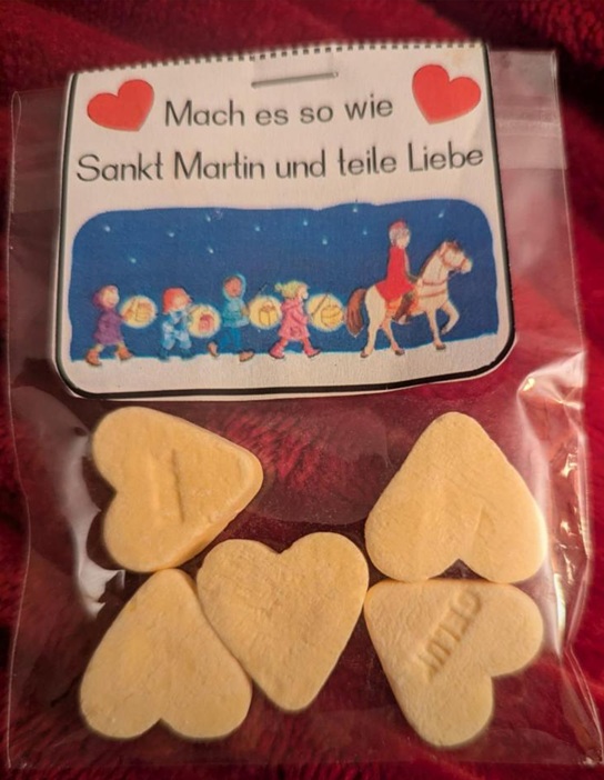 Und zu guter Letzt gab es noch ein kleines Präsent von unserem Förderverein. Jedes Kind erhielt eine Tüte mit Süßigkeiten zum Teilen. Ganz im Sinne des Sankt Martin, der seinen Mantel mit einem Bedürftigen teilte, sollten wir alle daran erinnert werden, dass Teilen und Liebe die wichtigsten Dinge im Leben sind.
