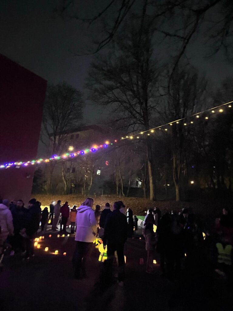 Ein Highlight des Abends war auch die Wunschleine, an der jedes Kind einen Wunsch auf einen Stern schrieb und ihn dann an die leuchtende Leine auf dem Schulhof hängte. Es war ein besonderer Moment, als alle Sterne gemeinsam leuchteten und unsere Wünsche in den Himmel schickten.