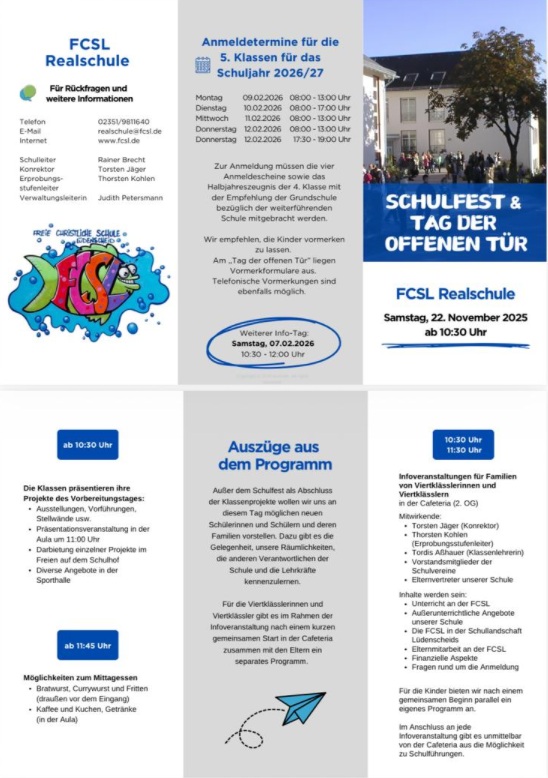 Kontakt: Tel 0 23 51 / 9 81 16 40), E-Mail Realschule@fcsl.de